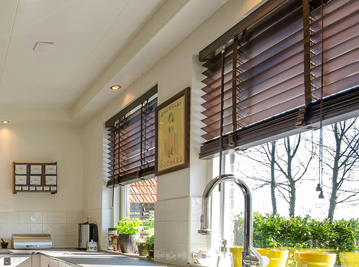 Легкие горизонтальные жалюзи хорошая альтернатива тяжелым шторам, практичные и удобные. Много цветов и материалов в том числе натуральных из дерева и бамбука, придадут уникальный стиль помещению. Они отлично подходят, как на кухню, так и в спальню, часто также ставятся на балкон или лоджию.