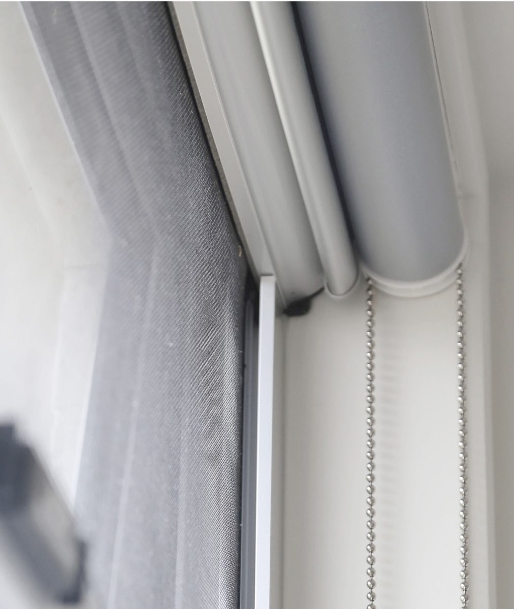 Элегантный короб кассета скрывает тканевый рулон и механизмы, а плоские боковые направляющие надежно защищают от просветов, а также от провисания полотна при открывании/закрывании окна.